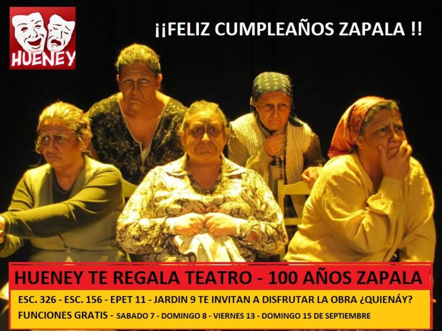 El grupo teatral Hueney se suma a los festejos del centenario de nuestra querida Zapala y en esta oportunidad, buscan regalarle a toda la comunidad, funciones libres y gratuitas de la obra ¿QUIENÁY?, de Raúl Kreig.